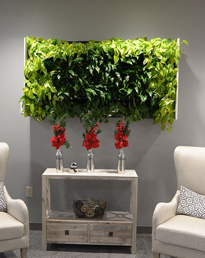 Green walls provide a variety of human benefits. In addition to the aesthetic quality, experts cite lower stress levels, increased productivity, lower noise levels within buildings, increased oxygen levels and decreased common cold ailments as just a few of the positive takeaways.