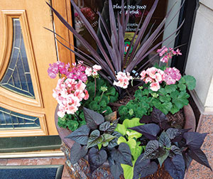 “When they came to us, they just wanted new urns and new plant material, but we talked to them about doing bimonthly change-outs that coordinated with the store’s advertising or the changing seasons,” Hamilton says. “They signed on for us to come back every other month. They give me some idea of what color they like, but I pretty much have free reign on the design, which has been fun for me.”