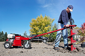 Little Beaver’s Hydraulic Earth Drill is a dependable, easy to operate solution for multiple digging and drilling applications including fence and sign installation, landscaping and soil sampling. The drill’s compact design allows access to areas that skid steer-mounted augers cannot reach. Its 11-hp engine and convenient hydraulic set-up allow for efficient digging in the toughest soil. The drill is capable of 30-foot depths with a 12-in. -or-smaller diameter auger and at 150 rpm, provides enough torque to operate augers up to 16-in. Little Beaver’s exclusive steel torque tube protects the operator from dangerous kickback allowing for one-person operation.
