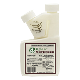 The wait is over for lowering your cost per acre while controlling broadleaf weeds faster. RightLine® ADDIT herbicide is the first post patent option of Carfentrazone labelled for turf. Carfentrazone rapidly penetrates into the plant cells and visible weed control may be apparent on foliage of susceptible weeds in 24 hours or less. Use RightLine® ADDIT herbicide as a tank mix partner with 3-way herbicides for greater efficacy, broader weed control and quicker knockdown of broadleaf weeds. Labeled for use on most cool and warm season turf in residential, commercial, and recreational turf.