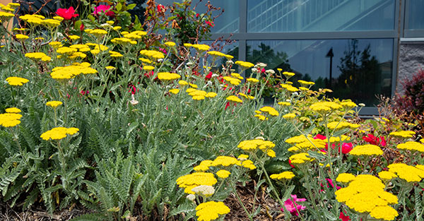 Colorful plant material spruces up the outside of the Trails Recreation Center.