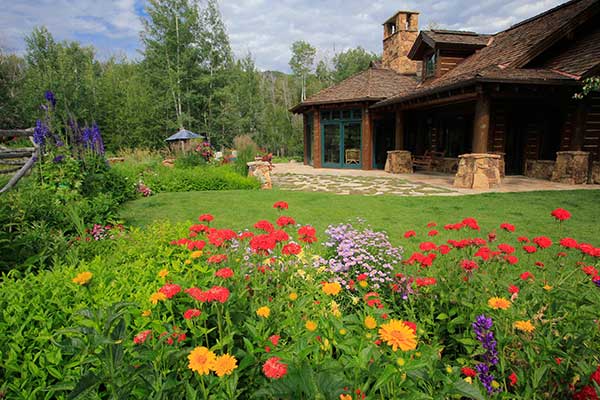 Rocky Mountain Custom Landscapes maintains the property’s half-acre of ornamental gardens with deer-resistant plantings, such as the daisies in the foreground.